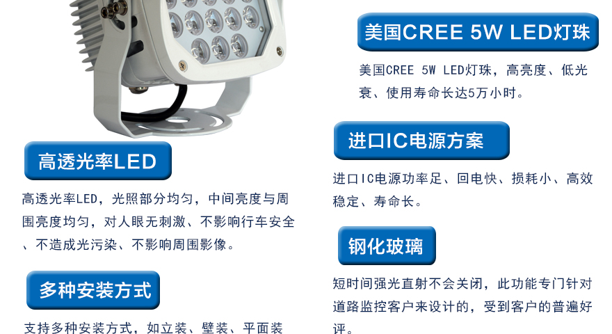 ★功率可調,根據現場光照環境調節燈光亮度,在滿足圖像效果的前提下盡量減少光功率,節能環保;