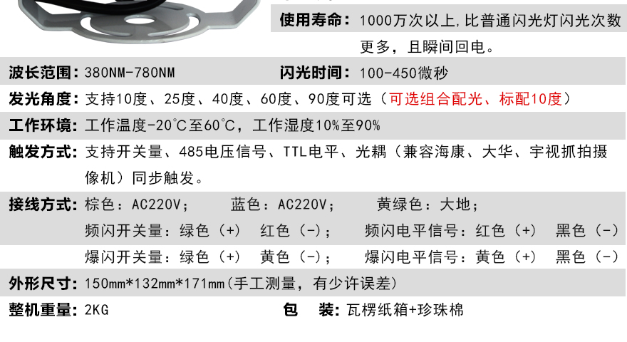 ★發光脈沖寬度可調,適應各種攝像機的曝光時間;